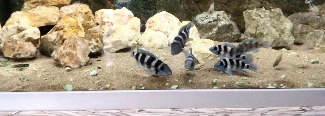 Ryby v nádrži: 6x neolamprologus tretocephalus a N. brichardi 2páry s mladými