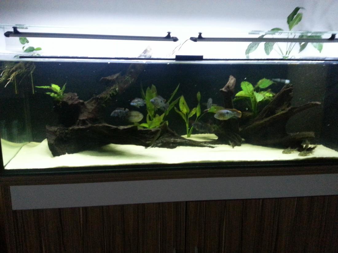 Po delší době trochu aktualizace ;) Nádrž jsem musel kvůli rekonstrukci bytu přestěhovat a znovu založit, tak jsem to vzal z gruntu, vyměnil dno za písek z provodína, vyměnil filtr za hmf a vyměnil osádku. Zůstali corydorasové a Kolumbijky, skaláry šli do světa, curvicepsky do menšího akva a přibylo 8 hlavé stádo rivulátu. Z toho se vyklubalo 5 samců a jen 3 samice, bohužel bych si to přál naopak, ale co se dá dělat. Alfa samec se vytírá se všemi třemi samicemi. Alfa ma cca 12 cm, samec metea cca 16 a ke spárování se samicí nějak nedošlo, to už jsem v psal v jiném vlákně :cry: