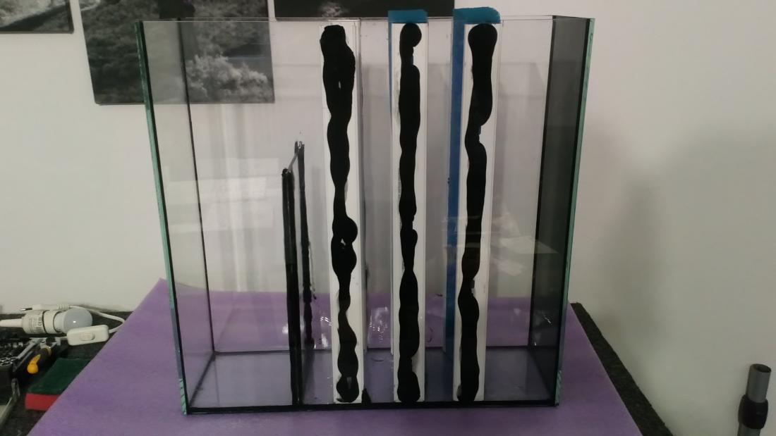Po delší době menší aktualizace. Rozhodl jsem se předělat filtraci. HMF se moc zanášel a nebavilo mě jej pořád vytahovat z akva. Tak jsem udělal externí vedle akva rozměry jsou 50x50x15 jen dvě komory, v první 3ks TM20 4 cm, čerpadlo atman 305 1200 l/h. Díky tomu jsem musel vyměnit skříň za delší, aby bylo místo i na filtr. Tak jsem toho využil a předělal akva, přeházel a doplnil kořeny, dosypal trochu písku a hlavně vyházel zbytek zelí, jednak jej devastoval rivulát a za druhé bylo plné řas, takže jsem se dostal na blachwater. Když přišla nová skříň, tak jsem toho využil a dole udělal místo pro akva karanténu/výkrmnu, momentálně v ní je 7 ks cichlasoma amazonarum na výkrm a endlerky jako krmení. Shodou okolností mi odešlo světlo diversa, na to, že to je polák, tak vydrželo 3 roky, nahradil jsem jej Sinkor led 120 cm 40W.