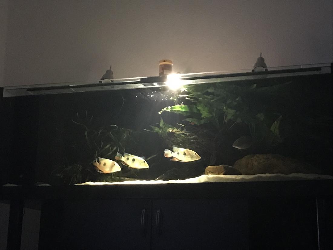 Dnes po krmeni a při zavíráni krycích skel - se mi to me hejno splasilo a jedna velká Satanoperca normálně vyskočila z akva. Flakla mne přes pupek a svihla sebou na zem. Chudák malá - asi mají strach z blížících se Vánočních svátku :)))