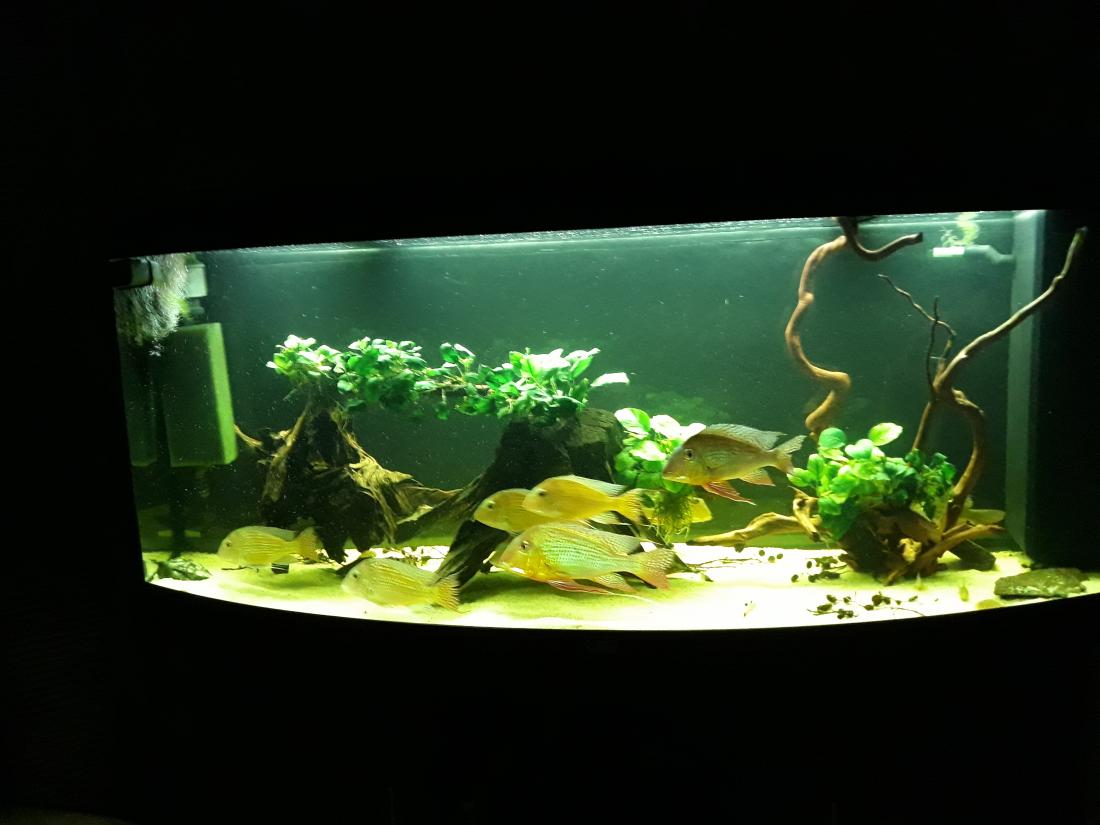 Dekorácia v nádrži: korene, kremičitý piesok, zopár kameňov