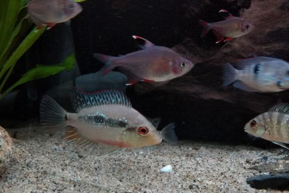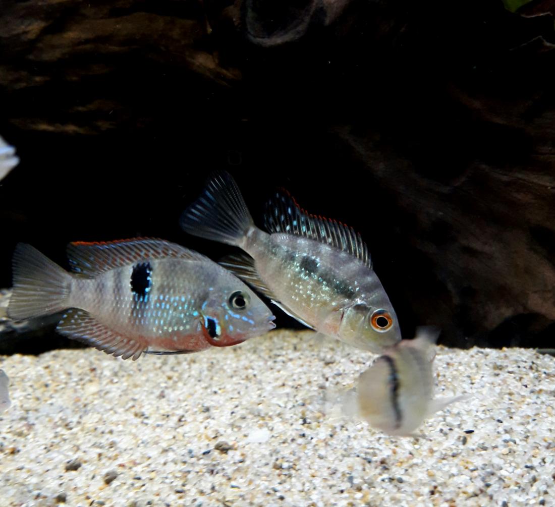 Ryby v nádrži: Amatitlania nanolutea(pár).Amatitlania kanna 7ks, Cribroheros longimanus 8ks, Thorichthys meeki 5ks, Thorichthys helleri 6ks.