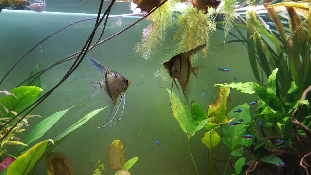 Ryby v nádrži: 2x Pterophyllum scalare Rio Nanay, 1x Discus blue diamond, 1x Discus (bol kupovany ako axelrodi ale asi je to neaky iny) , 1 par Discus - Oriximina red (wild) , 16x paracheirodon axelrodi, 3x Sae, 3x Prisavka thajska, 3x Mrenka krasnoplutva, 5x Mrenka nadherna, 1x guaianacara stergiosa 1x sekierka(na dozitie) a moja druha velka vasen L-sumci - 1x gibbiceps 1x panaque nigrolineatus 1x green phantom pleco 1x golden nuget (L018) 1x Peckoltia vitatta 1x Leopard cactus pleco (L114) , 1x Ancistrus dolichopterus (L183), 1x Peckoltia compta (L134), 1x Snowball pleco (L201) , 1x Loricaria sp. Rio Atabapo. Ak som na niečo zabudol tak doplním časom.