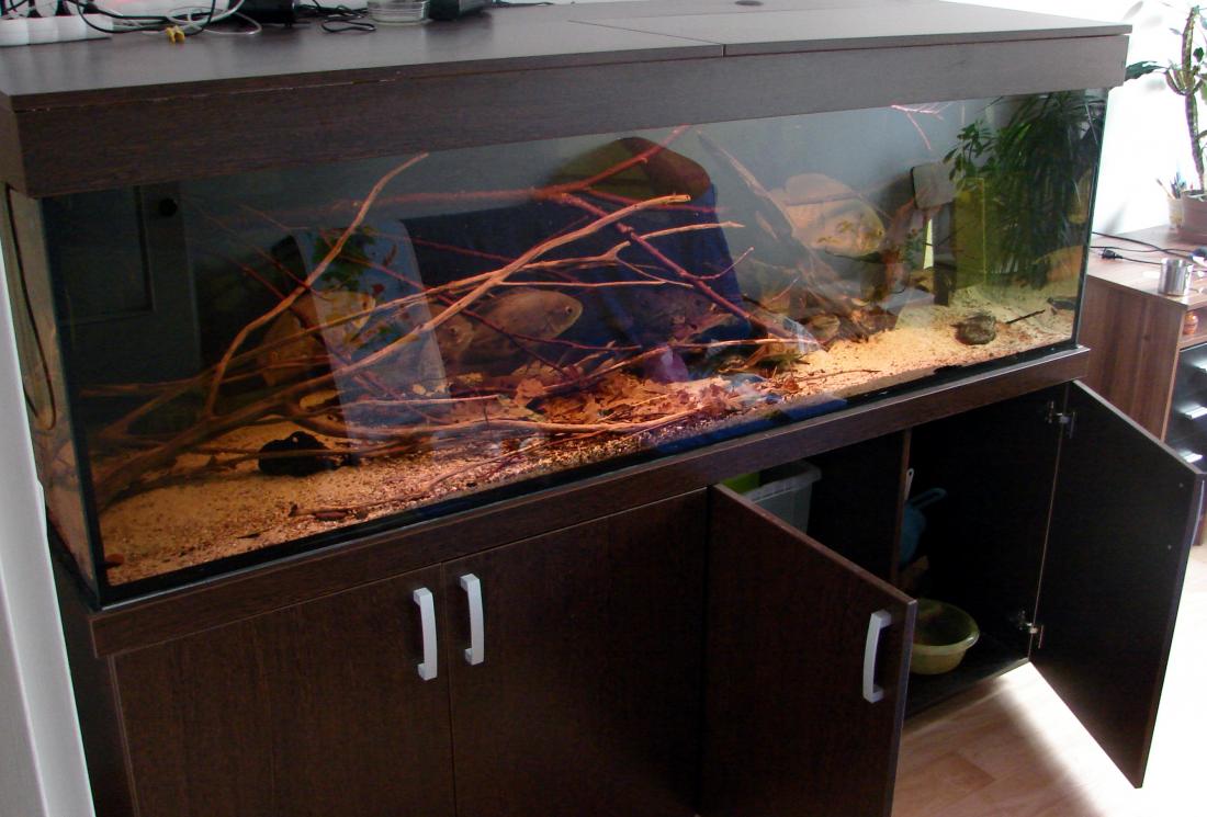 Za komplet bez ryb: akvarium, skrinka na zakazku, dva filtry (ncf1500 a fluval 405), 2 x topne těleso eheim 300W 40 a 50cm, kryt s led osvetlenim, jeden předřadnik hagen glo na 30w T8 zarivku, proudove cerpadlo....plus nějaké drobnosti kolem, jako nějaké kořeny, síťka, kompresor, cely ncf1500 na nahradni dily, 2male topne tělesa myslim po 25w a jine blbosti...